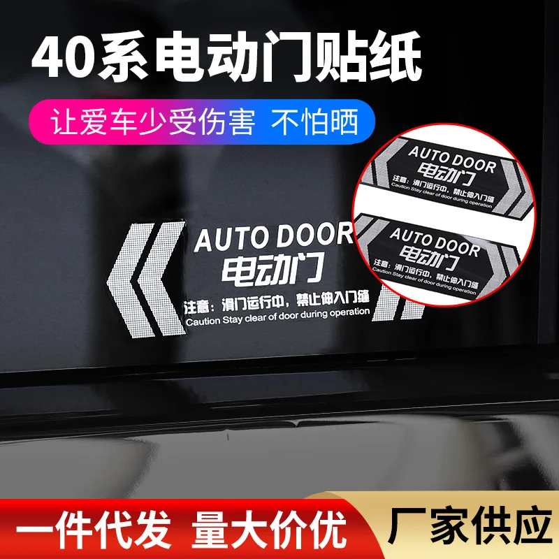 适用于埃尔法奥德赛赛那腾势D9电动门贴纸商务车外饰自动门警示贴2件套