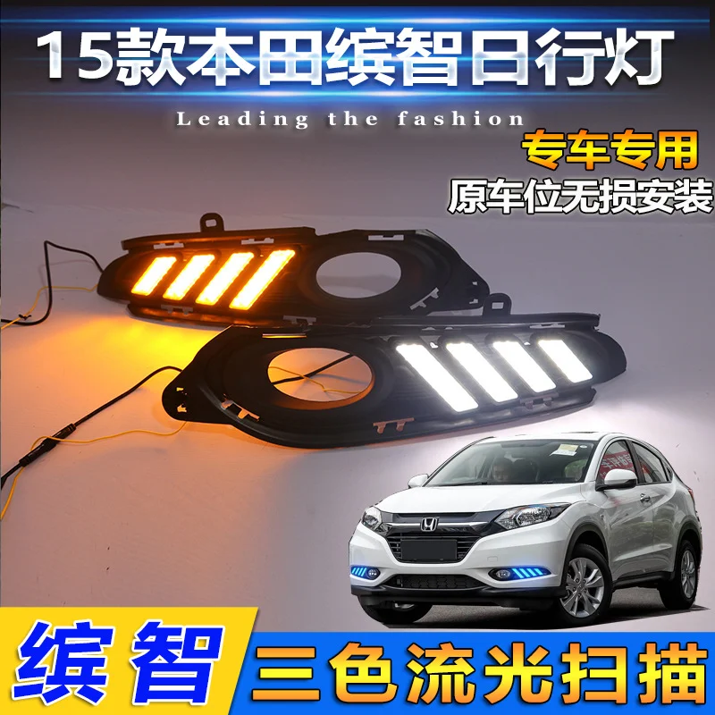 适用于15-18款本田缤智日行灯前雾灯改装LED日间行车灯流光转向灯