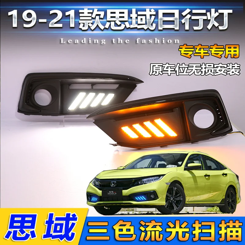 适用于19-21款本田思域日行灯前雾灯框改装LED日间行车灯前杠灯