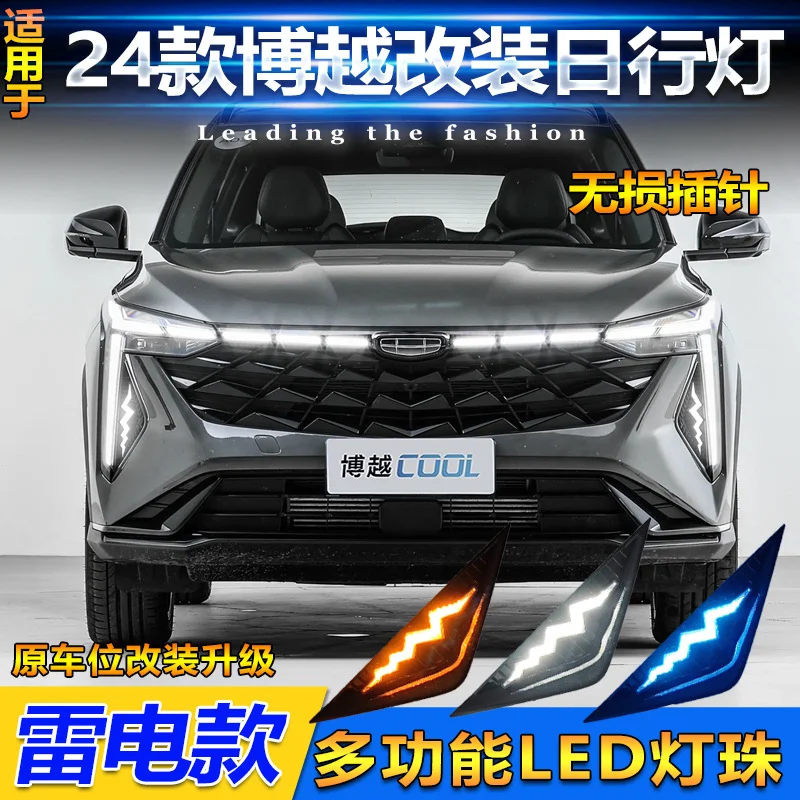 适用于23-24款吉利博越日行灯专用前雾灯框改装LED日间行车灯装饰