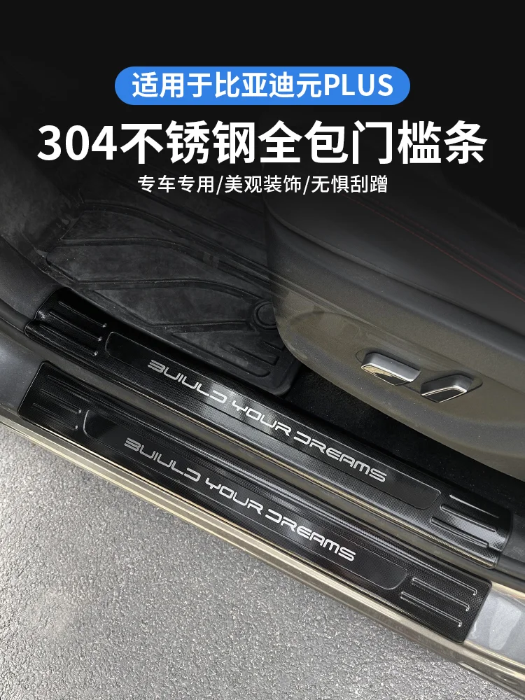 适用ATT03比亚迪元PLUS门槛条专用保护装饰304不锈钢迎宾踏板改装